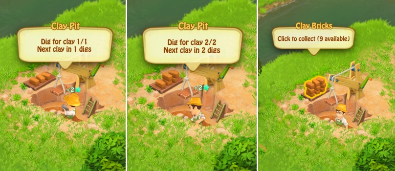 And here’s Joe digging for Clay Bricks. When he gets to 9 Clay Bricks, click to collect.