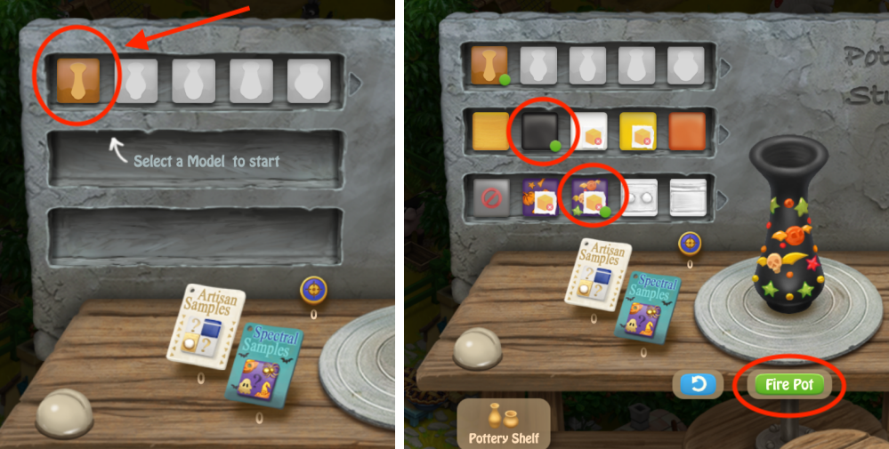 2. By purchasing them directly from the Shop, or from inside the Pottery Studio popup.