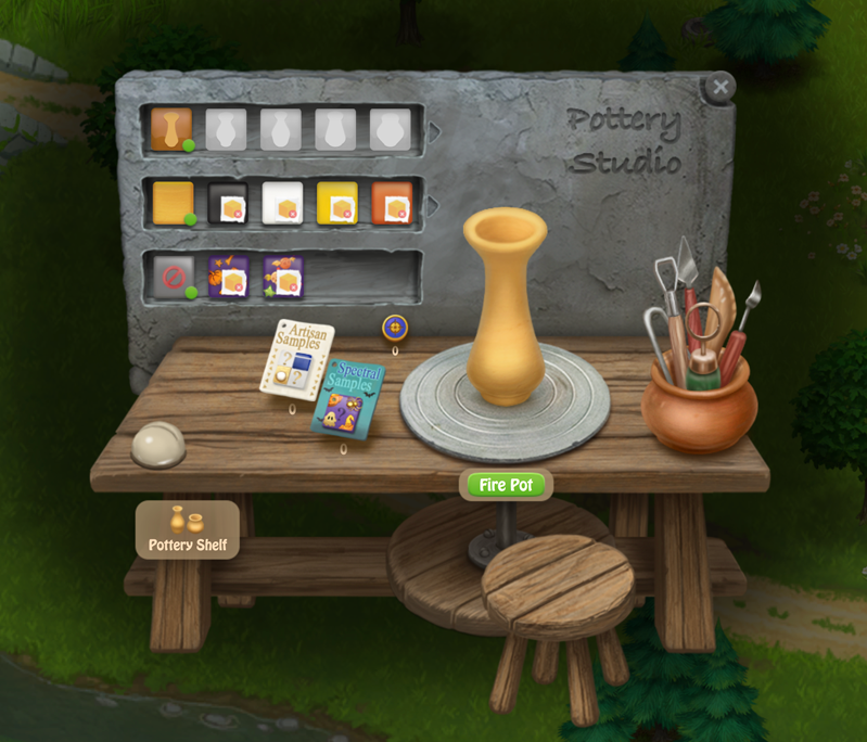 The Pottery Studio is a new Gear where you can make Artisan Pots all-year round, or special Seasonal Collections, such as the Haunted Path Collection.