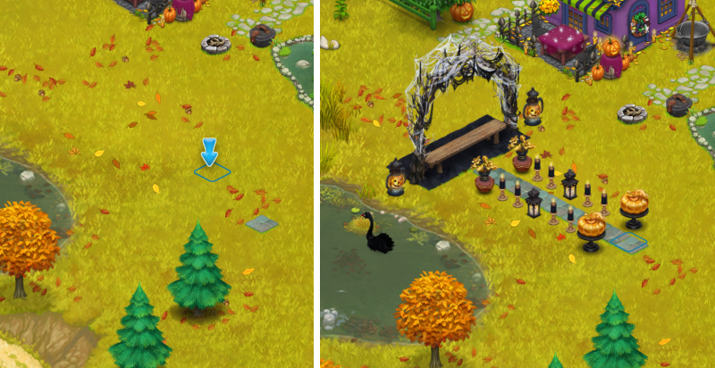 To get started, click it, then place the Halloween Haunted Path in the highlighted area in front of your Farm.