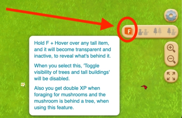 To enable this option, hover with your mouse over the trees icon at the lower-right part of your game, then click the icon with an “F” on it. This options automatically disables the other options if they were active previously.